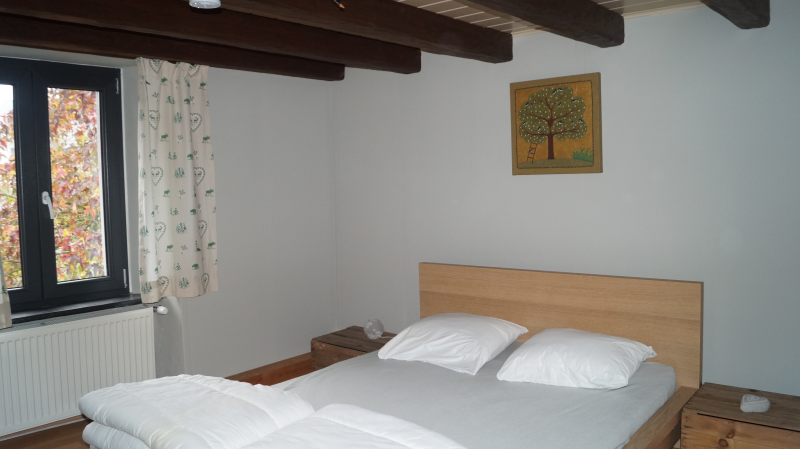 A l'étage, une chambre avec un lit de 2 personnes et une chambre avec un lit de 2 personnes et un lit d'une personne